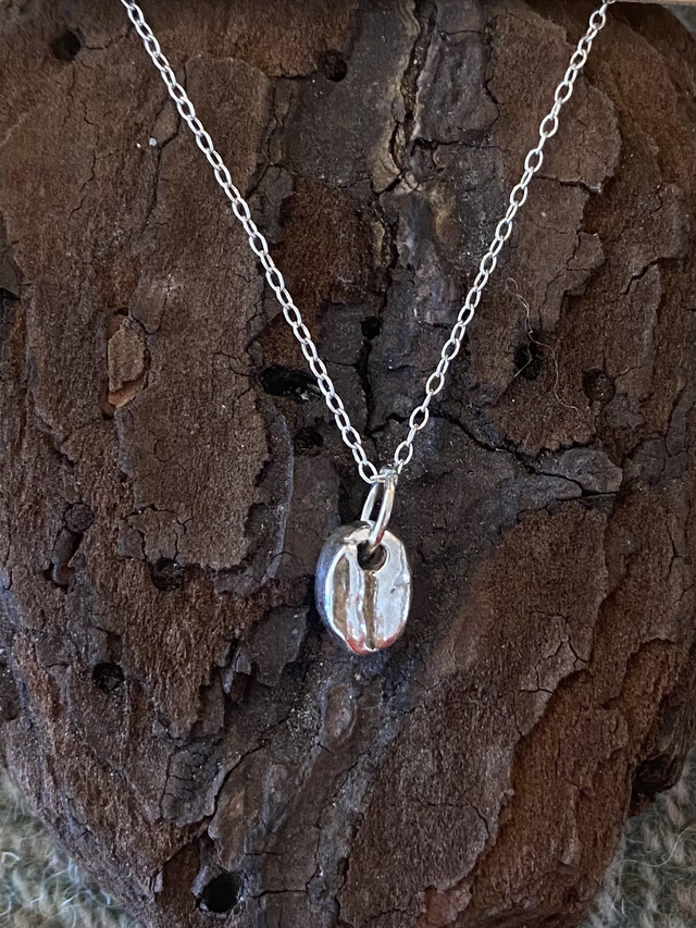 Fine Silver Coffee Bean Necklace | Handmade Delicate Pendant and Chain