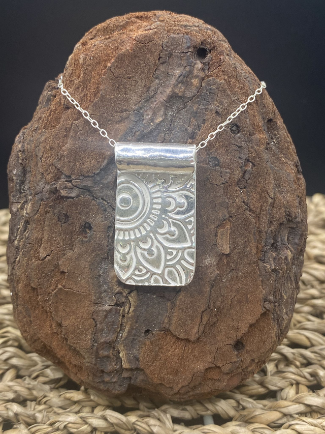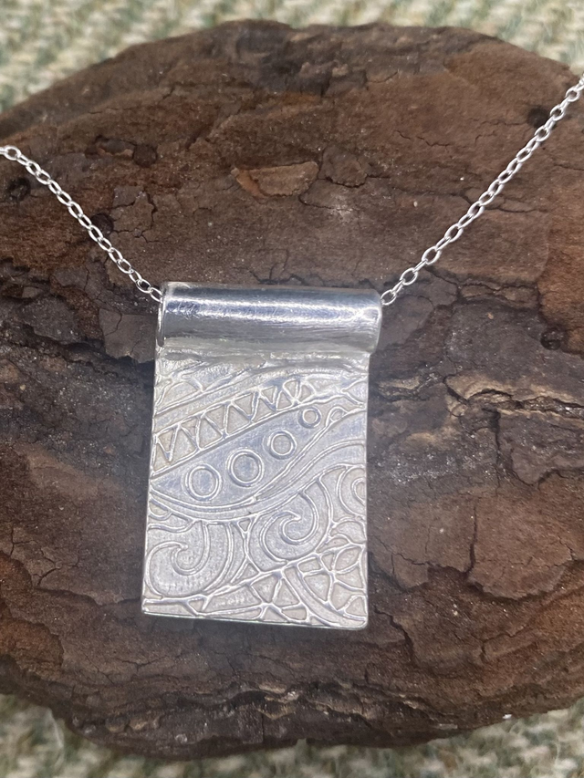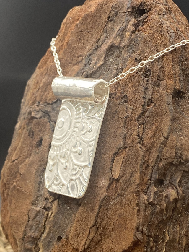 Fine Silver Textured Pendant | Handmade Delicate Pendant and Chain