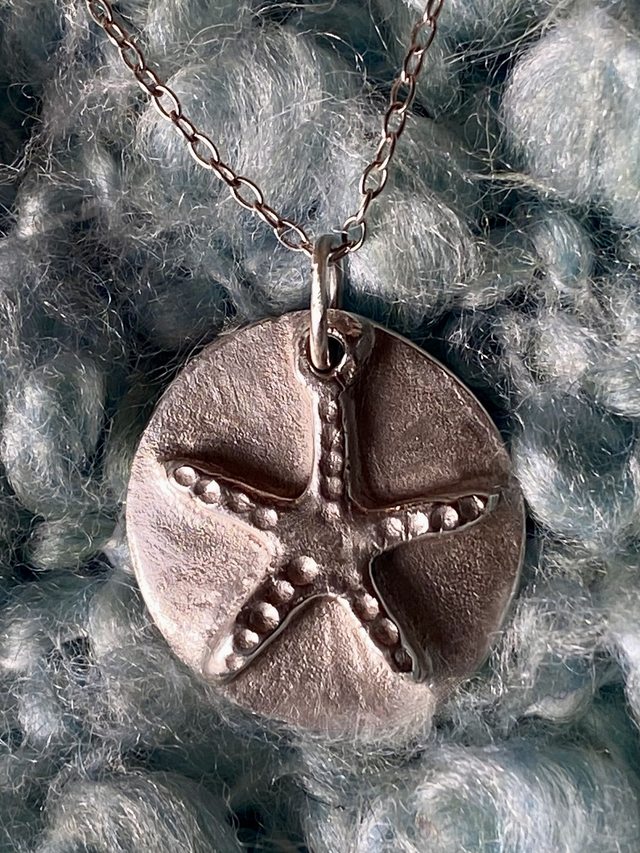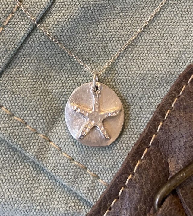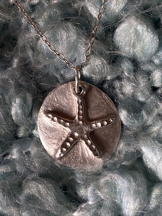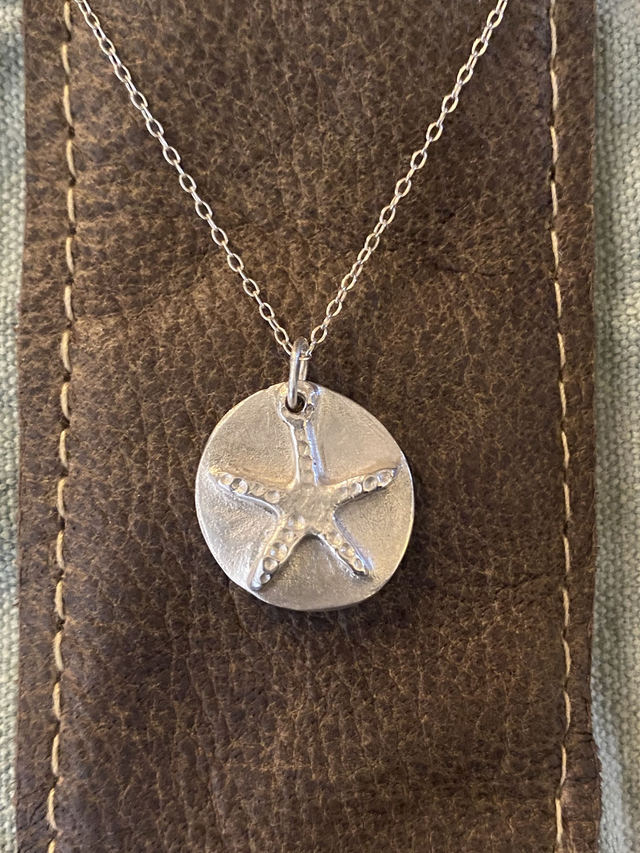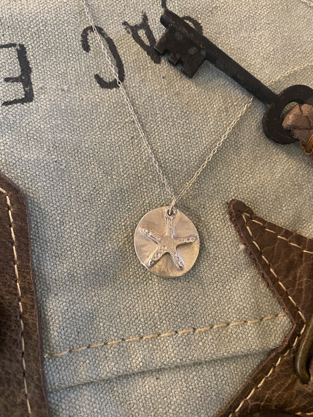 Fine Silver Starfish Disc Pendant | Handmade Delicate Pendant and Chain