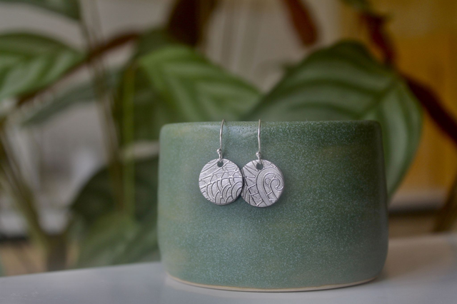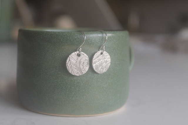 Fine Silver Textured Disc Earrings | Handmade Delicate Pair of Earrings